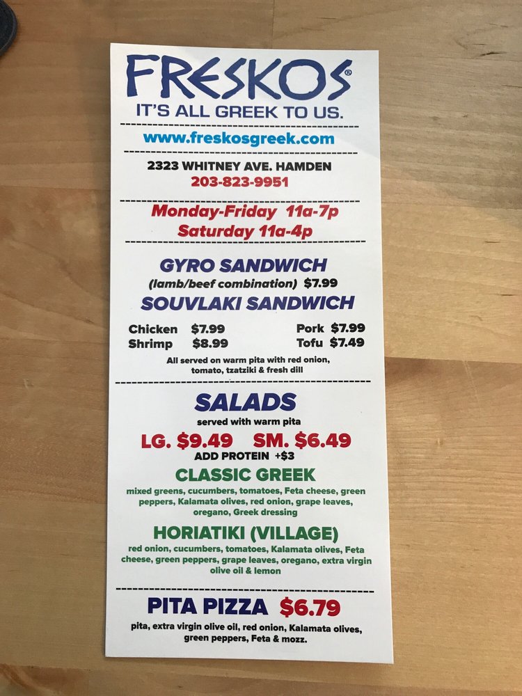 Freskos - Hamden Menu (Update 2025)